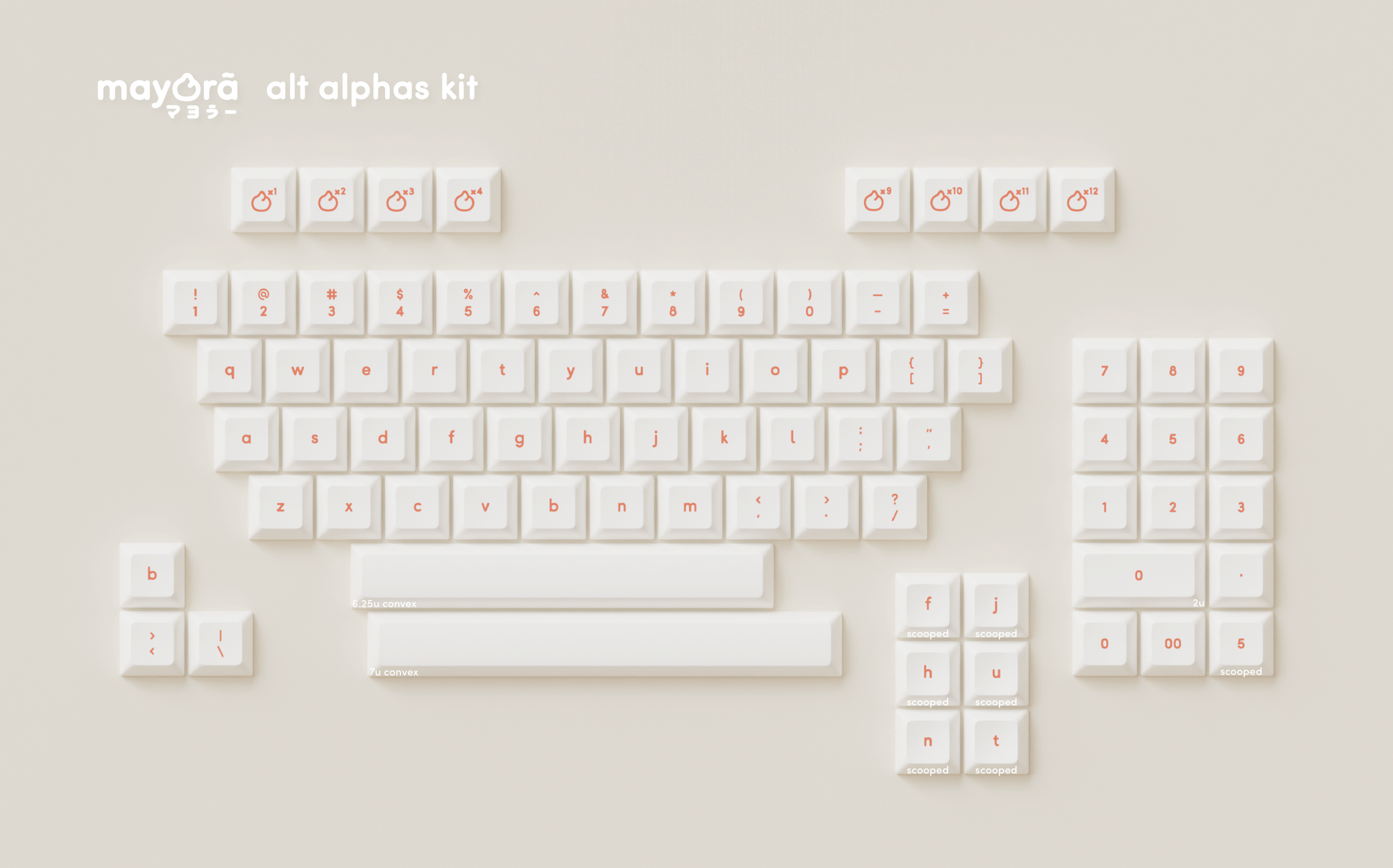 "Mayorā(マヨラー)" is a japanese term made up to describe someone who is addicted to mayonnaise. It comes from combining "Mayo" with the suffix "-er" (as in runner, player, etc), which essentially means that they are a "Mayonnaiser". A keyset inspired by the famous condiment, its delectable flavour and one of a kind taste make the best pairing for anything. Creamy, opulent, heavenly.